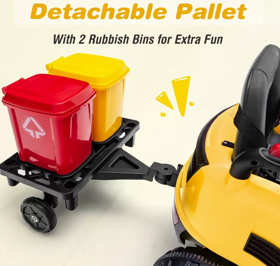 - Rotating Brushes & Rubbish Bins: Kids can use 2 front rotating brushes to enjoy the fun of sweeping the floor by pressing the sweeping disc switch, pretending to clean as a worker to beautify the streets. Meanwhile, this street sweeper truck also features a detachable pallet with 2 rubbish bins, allowing kids to store simulated garbage(not included) and their toys.